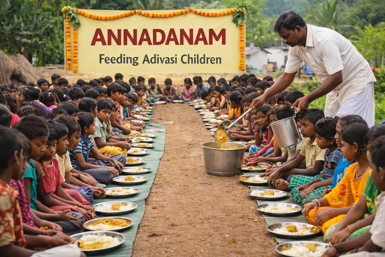 Welcome to Daana Dharma Trust. Daana Dharma Trust works for the welfare of Adivasi and underprivileged communities through dharmic and social service activities. The Trust has conducted mass marriages for around 420 poor Adivasi couples and provides daily Annadanam to 200 orphaned tribal children. It supports education through 105 schools in Adivasi hamlets and runs a Gaushala. The Trust also undertakes temple construction, temple development, and installation of sacred deities’ idols.